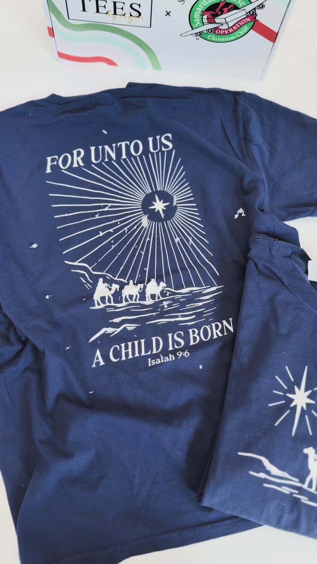 Every tee purchased helps fund the packing of shoebox gifts for Operation Christmas Child. We’re using the proceeds to purchase items for the boxes and also giving directly to Samaritan’s Purse to help cover the $10 shipping cost for each box.