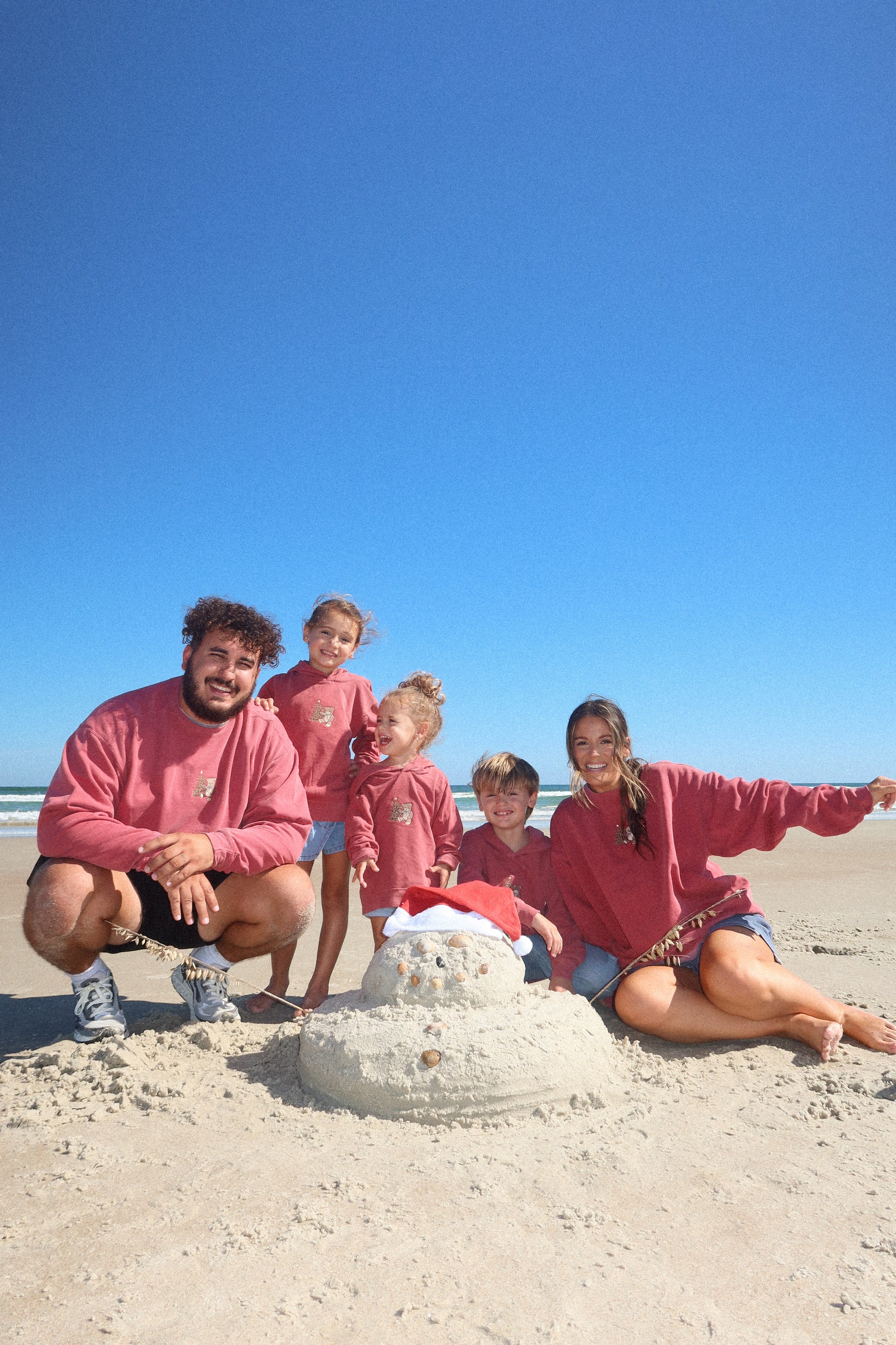 Comfort Colors brand brick colored sweatshirt embroidered with a Christmas tree & teddy bear.
