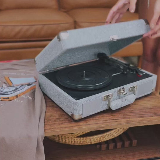 Comfort Colors brand espresso tee printed with a record player doodle with Jesus dancing with His child — including the verse Psalm 149:3